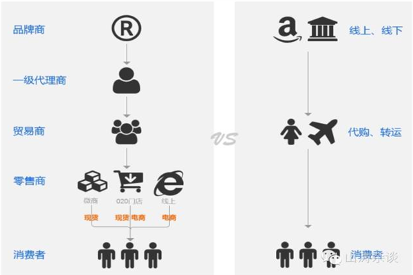 一級代理商、貿易商、分銷(xiāo)商、供應鏈金融服務(wù)商這個(gè)群體才是真正“賣(mài)貨”的。他們的絕大多數上不接品牌商,下不對消費者,絕對的“夾心餅干”。想了半天,最終用中間交易商(以下簡(jiǎn)稱(chēng)中間商)這個(gè)詞代表這個(gè)群體。在品牌商缺位的情況下,他們是激活市場(chǎng)的重要力量,跨境電商的3條價(jià)值鏈都有他們的存在,他們給電商供貨、給代購供貨、給微商供現貨等等方式形成當下的跨境供應鏈體系。